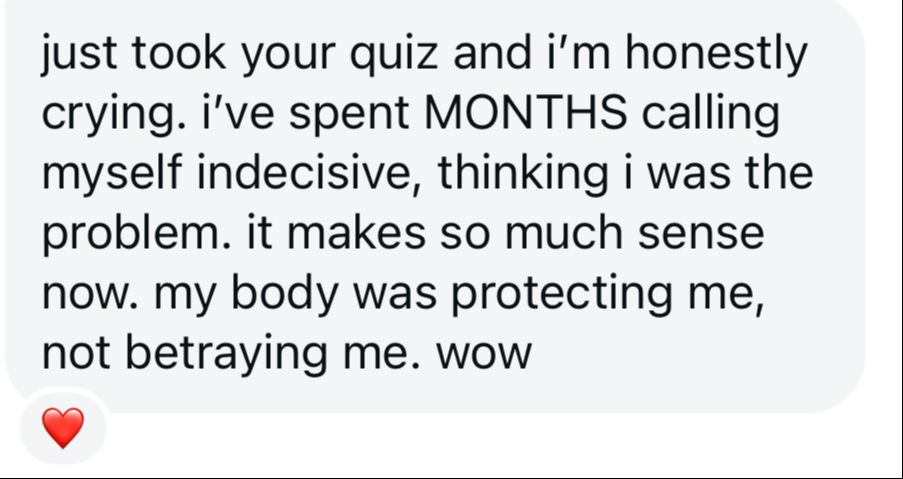 This quiz doesn’t push you to do anything. It simply shows you what your nervous system is protecting you from so you can move forward when you are ready. It's 100% Private.