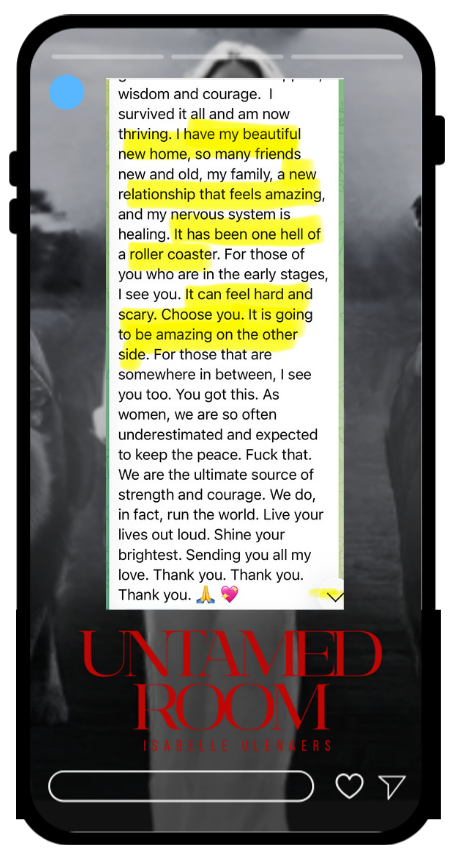 The Untamed Room™ cannot and does not give any guarantees on personal outcomes, emotional breakthroughs, mental health progress, or life results from our courses, programs, coaching, community, or content.